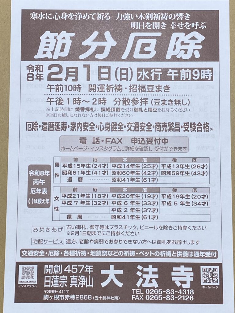 節分追儺法要 祈祷札申し込み