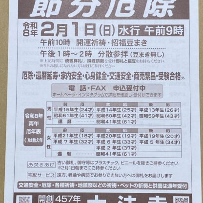 3. 節分追儺法要 祈祷札申し込み